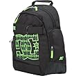 DC Devour backpack. Large DC applique at front. Board-carrying front strap system with Velcro closures. Side pockets. Fleece lined sunglass pocket at top. Spacious main compartment. Padded back panel and shoulder straps. Approx width: 15"(38cm). Imported.
